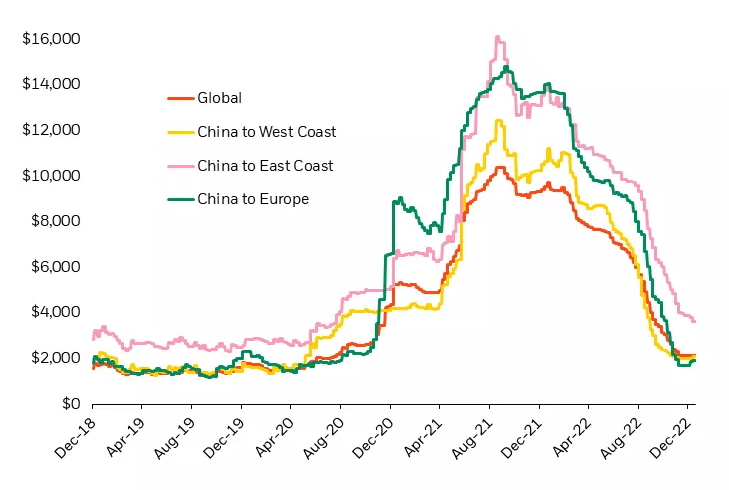 Figure 2: Global supply chains have mostly recovered with shipping costs returning to pre COVID levels