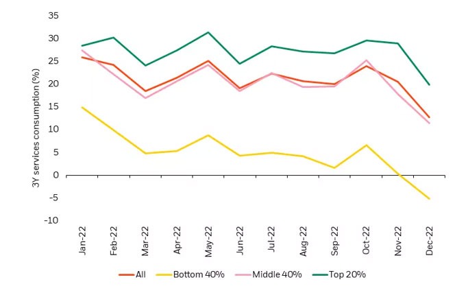 3Y Discretionary service consumption by income cohort adjusted for inflation